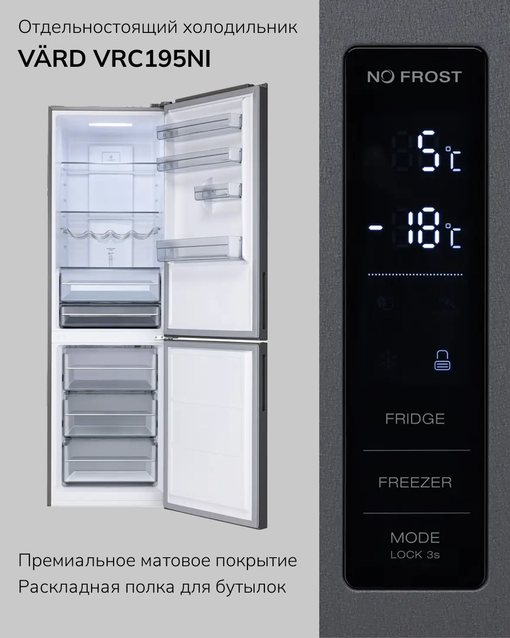 ➖Отдельностоящий холодильник VÄRD VRC195NI